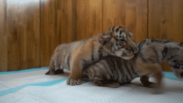 黑龙江东北虎林园每年都有一批纯种的、性状优良的东北虎幼崽诞生。多年来,黑龙江东北虎林园不断积累东北虎人工繁育经验,使虎宝宝成活率取得了很大突破。