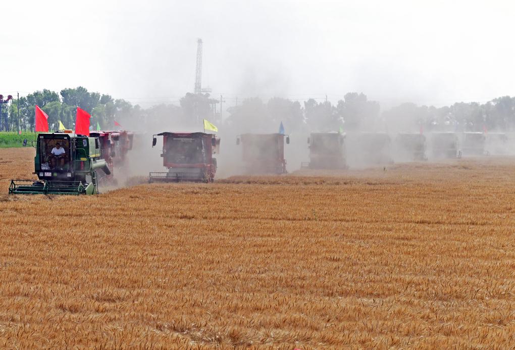 临河区是全国粮食生产先进县,由于日照充足、土壤肥沃等原因,生产的小麦面粉具有蛋白质含量高、面筋质量好等优点。近期,临河区紧抓天气晴好的有利时机,共调用260台小麦联合收割机支持各乡镇开展麦收工作,提高作业效率,确保20.06万亩小麦顺利收获。