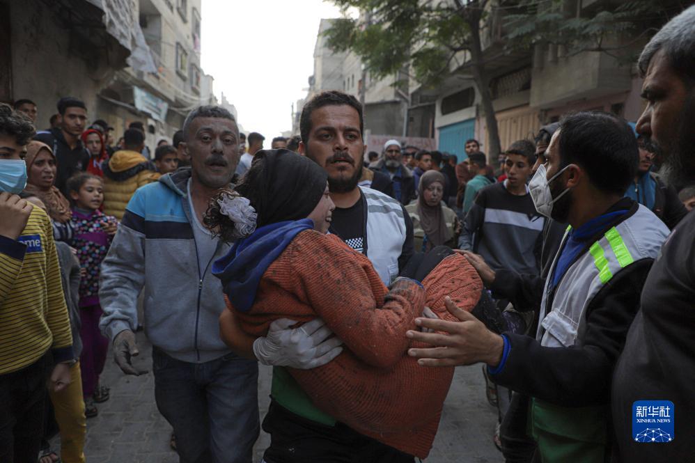 12月1日,在加沙地带南部城市汗尤尼斯,人们在以军空袭后开展救援。新华社发(里泽克·阿卜杜勒贾瓦德摄)