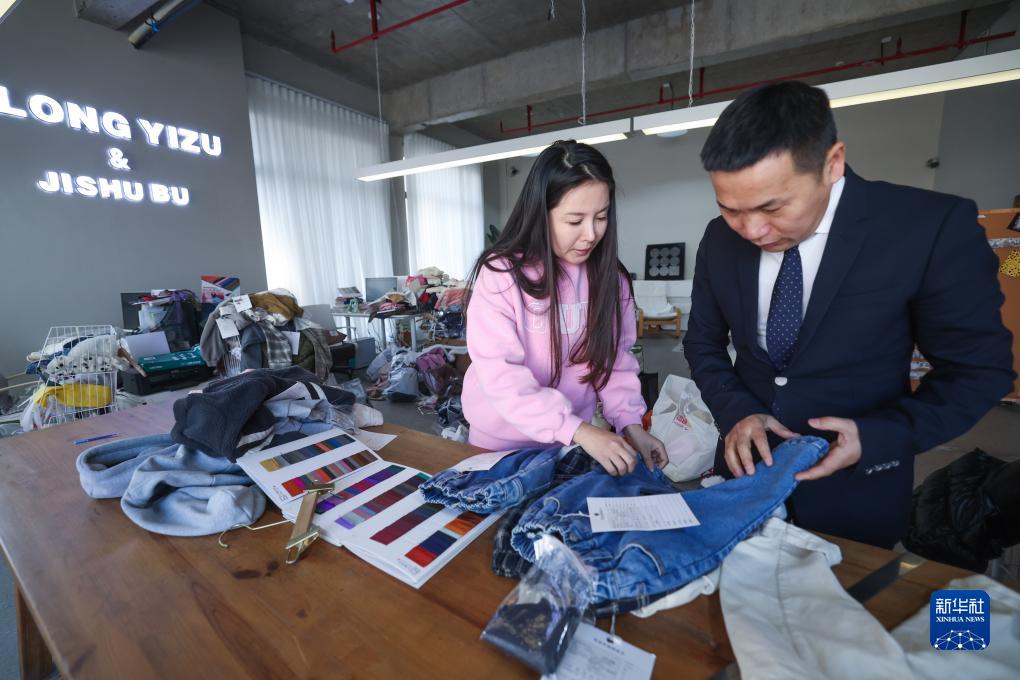 12月5日,在位于织里镇的阿龙衣族服饰有限公司内,设计人员在讨论童装款式。该企业于2019年全国首创童装+百货模式,打造七秒易购新零售品牌,目前全国有120家门店,年销售额达1.2亿。