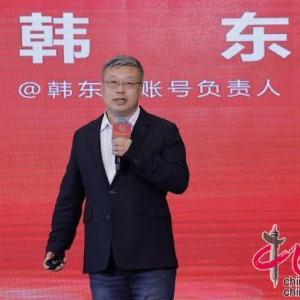 “@韩东言”账号负责人韩东作演讲。中国网 董宁 摄
