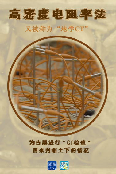 它有点像我们医院中常用的“CT”,所以又被称为“地学CT”。岩石、土壤等地下介质导电性是不同的,针对这样一个特性,考古人员一次性布置几十至几百根电极,这相当于无形的钻探,每一个测深点均可理解为一个钻孔,收集不同地层的电阻率,从而判断土下的情况。