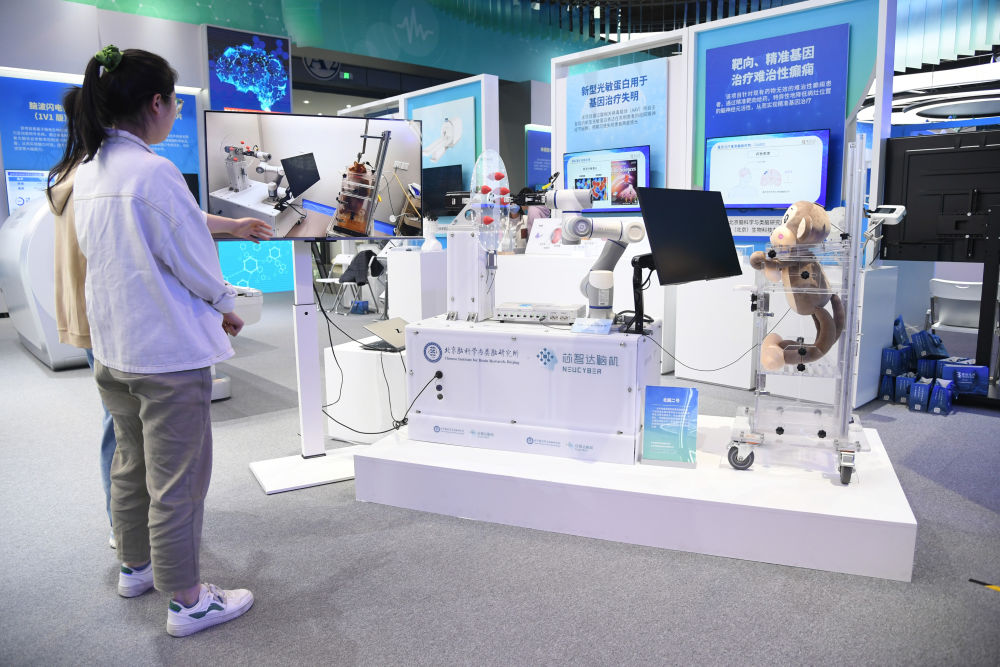 这是2024年4月27日在中关村展示中心常设展中拍摄的“北脑二号”脑机接口。新华社记者 任超 摄
