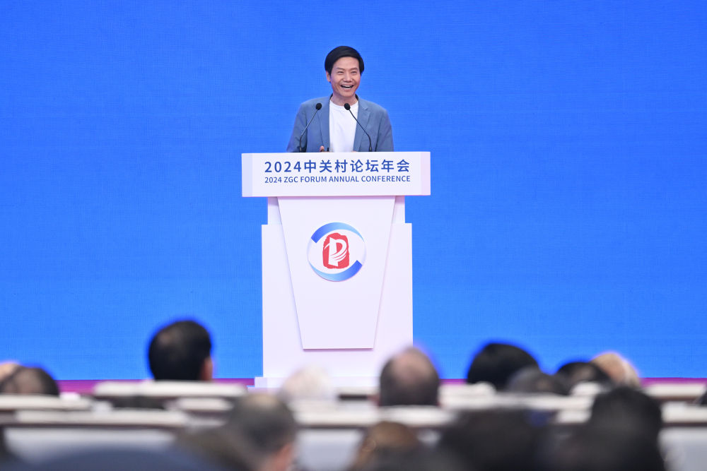2024年4月25日,小米集团创始人、董事长兼首席执行官雷军在2024中关村论坛年会上发言。新华社记者 李鑫 摄