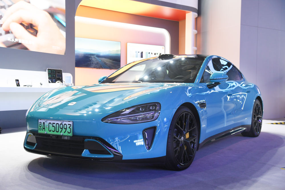 这是2024年4月27日在中关村展示中心常设展中拍摄的小米SU7汽车。新华社记者 任超 摄