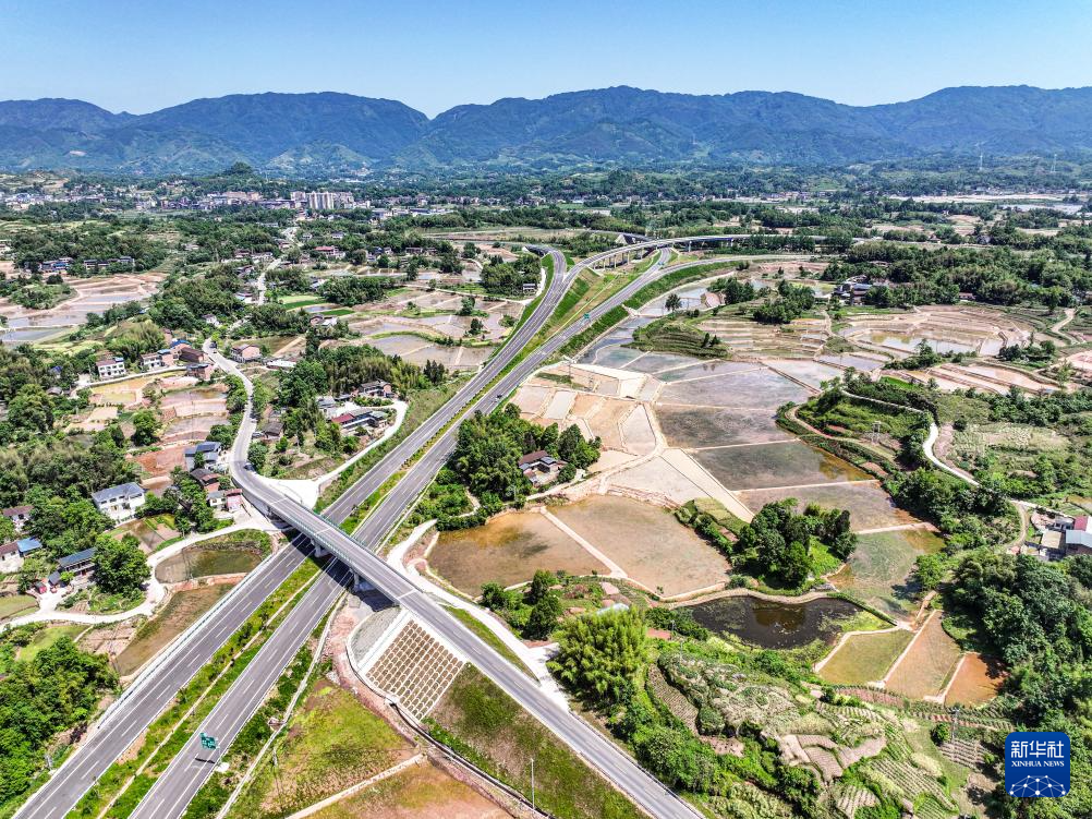 这是2024年4月28日拍摄的重庆市梁平区境内的梁开高速重庆段(无人机照片)。新华社记者 唐奕 摄