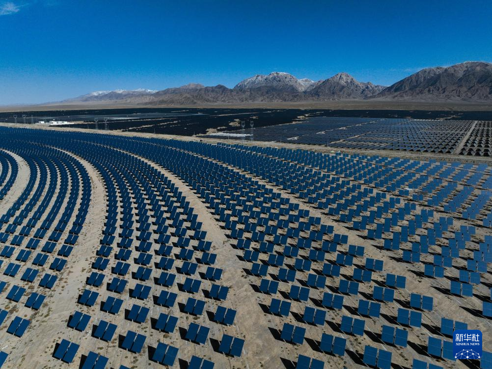 这是2024年4月23日在青海省海西蒙古族藏族自治州德令哈市光伏(光热)产业园拍摄的光热电站(无人机照片)。新华社记者 张龙 摄