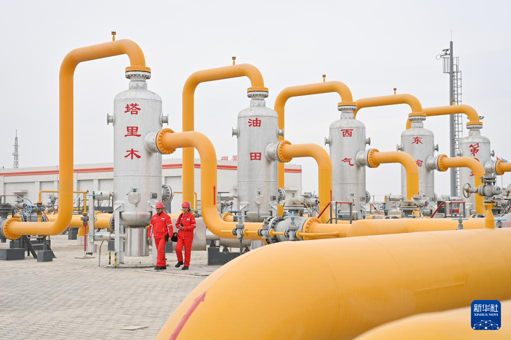 2023年2月6日,输气工在塔里木油田西气东输第一站装置区进行巡检。新华社记者 李响 摄