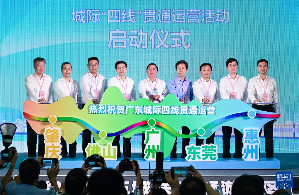 5月26日,广东城际广佛南环、佛莞城际、莞惠城际、佛肇城际“四线”贯通运营启动仪式在城际铁路番禺站举行。新华社记者 刘大伟 摄