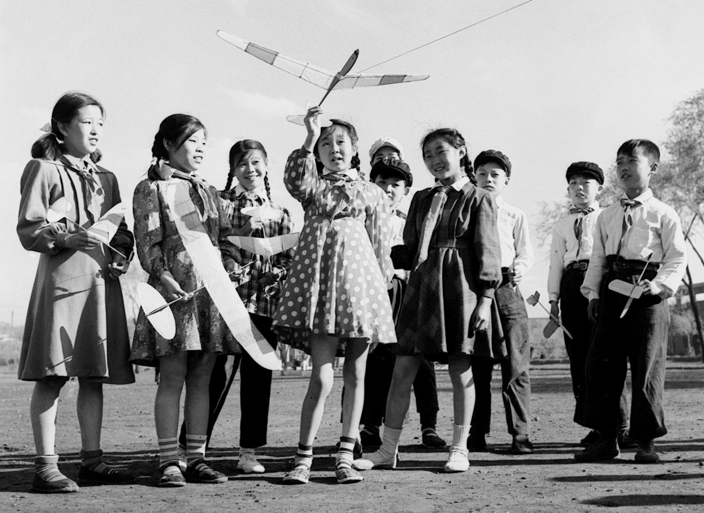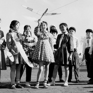 1956年5月30日,哈尔滨市少年宫的航空模型小组的少先队员,制作好一批滑翔机模型,迎接“六一”儿童节。图为他们在准备试飞的情形。