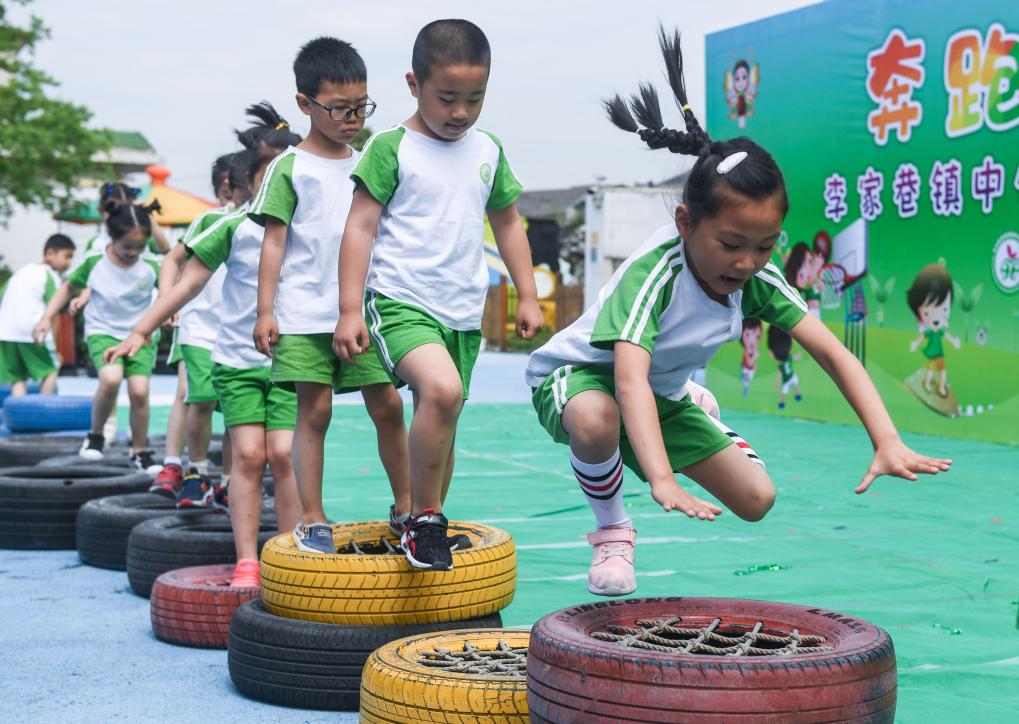 2019年5月29日,浙江省长兴县李家巷镇中心幼儿园举行“奔跑吧,萌娃”趣味拓展游戏活动,迎接即将到来的“六一”儿童节。