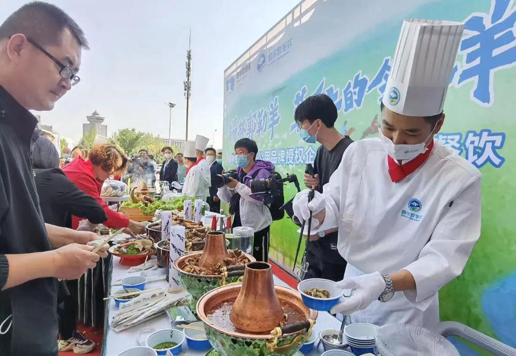 这是群众在“锡林郭勒羊”区域公用品牌推介活动现场品尝羊肉。(受访单位供图)