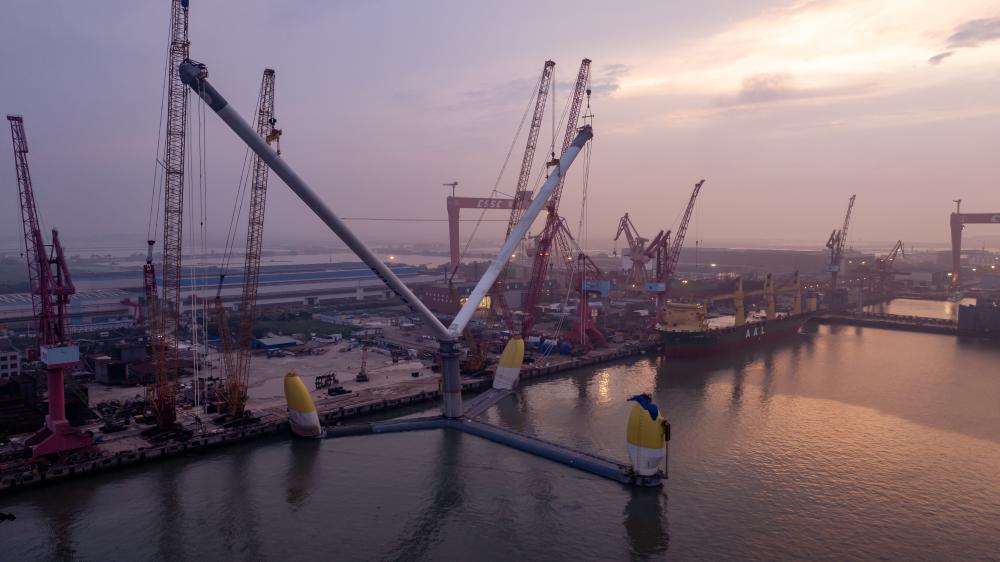 图为“双转子”深远海漂浮式能源岛吊装现场。(明阳智慧能源集团股份公司供图)