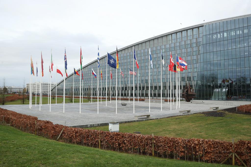这是2月15日在比利时布鲁塞尔拍摄的北约总部一角。为期一天的北约成员国国防部长会议15日在比利时首都布鲁塞尔结束。会议就加强北约的威慑和防御以及对乌克兰的支持等问题展开讨论。新华社记者赵丁喆摄