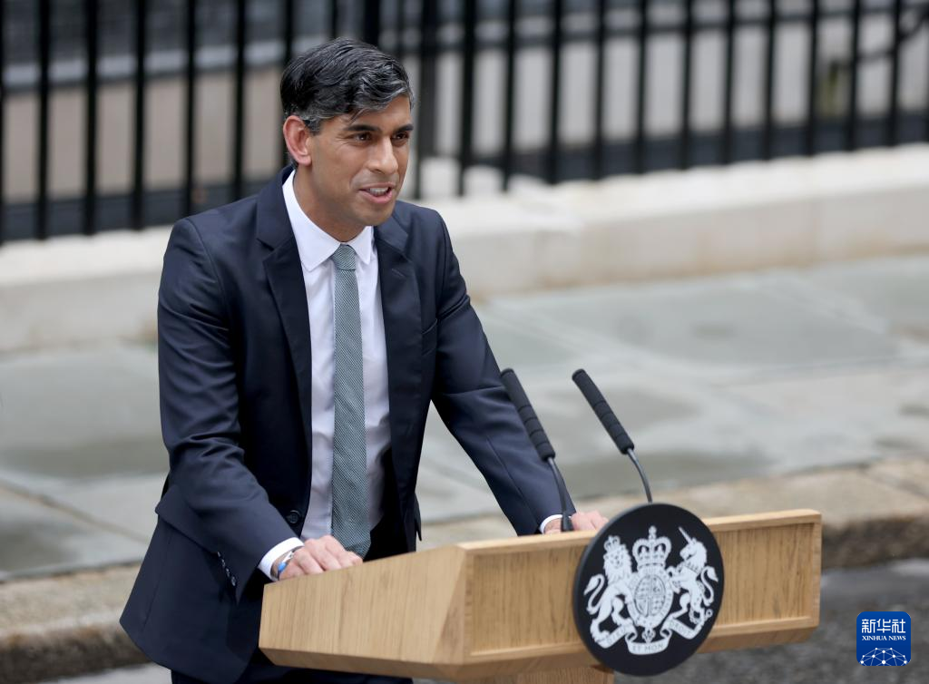 7月5日,苏纳克在英国伦敦唐宁街10号首相府前对媒体发表讲话。新华社记者 李颖 摄pagebreakpagebreak