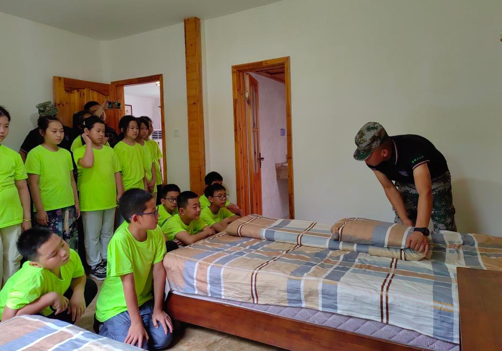 今年6月30日,武汉一些参加独立研学营的小学生在培训生活习惯规范。(余勇刚 摄)
