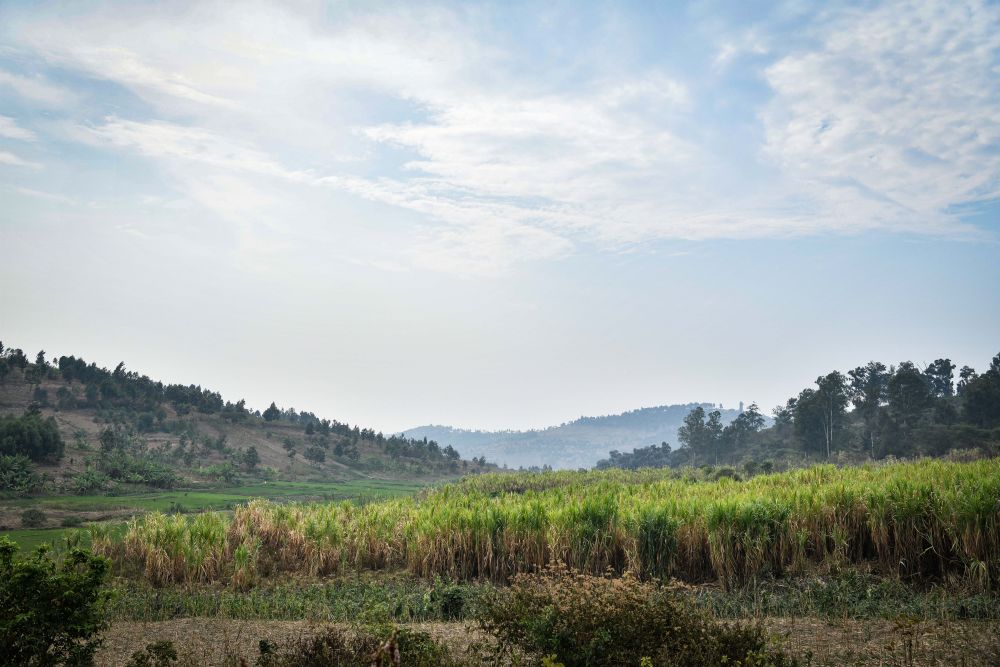 ↑位于卢旺达南方省胡耶区的一处菌草田。