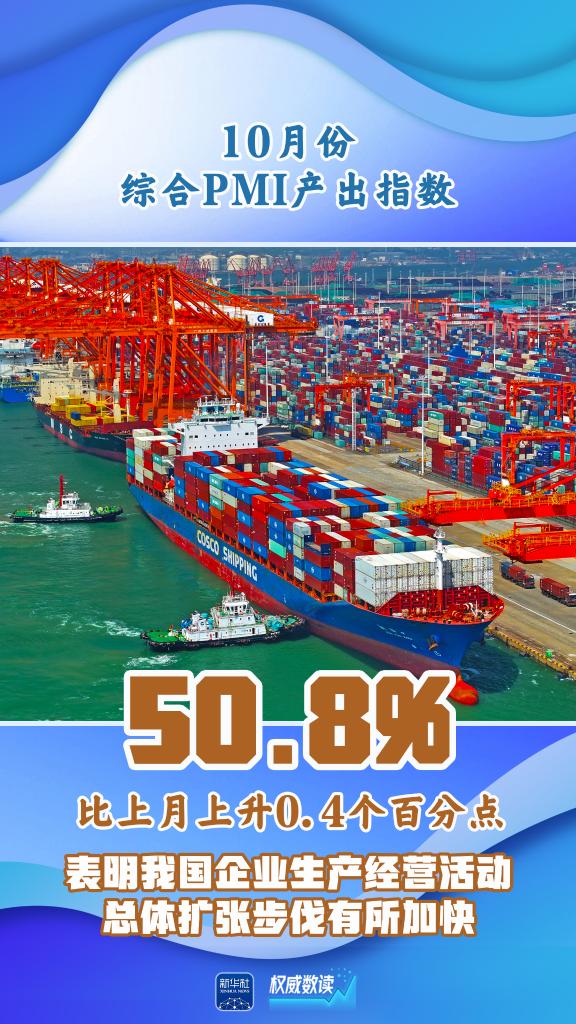 国家统计局服务业调查中心高级统计师赵庆河表示,随着一揽子增量政策加力推出以及已出台的存量政策效应逐步显现,我国经济景气水平继续回升向好。10月份,制造业采购经理指数、非制造业商务活动指数和综合PMI产出指数均位于临界点以上。