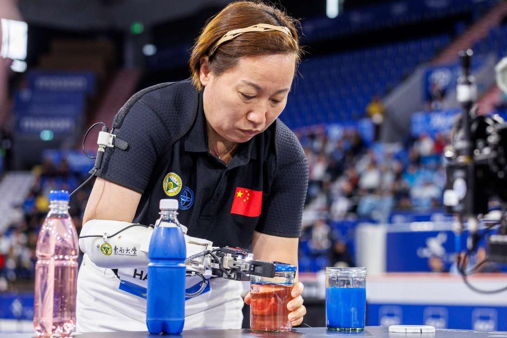 本届总决赛共有来自26个国家的76支队伍参加8个大项的角逐,其中“上肢义肢”组是竞争最为激烈的组别之一。参赛队伍要一次性完成假肢提重物、双臂协作、精细物体抓取、盲盒抓取等10个假肢操作任务,以任务完成数量和完成时间判定成绩。中国选手操作的义肢如同“智能手”一般,仅用8分钟精准完成了数十个动作要求,赢得现场观众的连连喝彩。