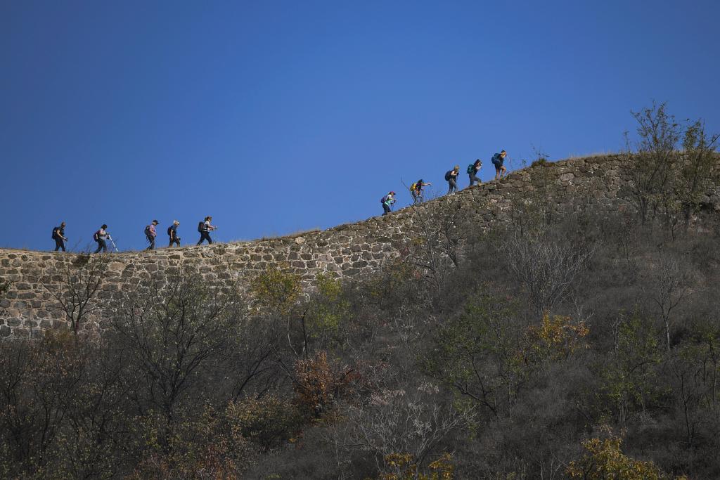 2023年10月24日,外国游客在北京市密云区古北口长城蟠龙山段游览。新华社记者 陈钟昊 摄