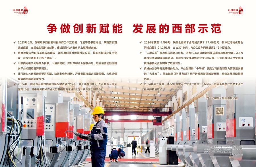 陕西省委主要负责同志表示:“要深入学习贯彻党的二十届三中全会精神和习近平总书记历次来陕考察重要讲话重要指示,坚持问题导向,强化改革牵引,全力打通科技创新和产业创新深度融合的堵点卡点,加快构建具有陕西特质的现代化产业体系。”