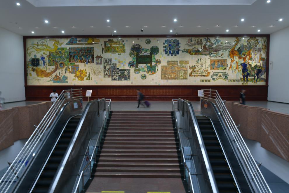 图为《天中春秋》唐三彩壁画。 (国铁郑州局供图)