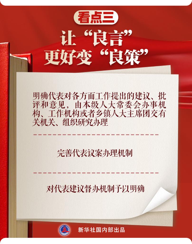 “重点督办建议是推动代表建议办理落实的制度性安排,是发挥代表建议服务大局功效的重要抓手。此次修法对各级人大做好重点督办建议工作提供法律依据,将进一步推动代表建议办理工作提质增效,更加充分地发挥代表作用。”余洋说。