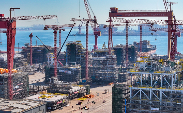 这是3月21日拍摄的天津博迈科海洋工程股份有限公司厂区一景(无人机照片)。新华社记者 赵子硕 摄
