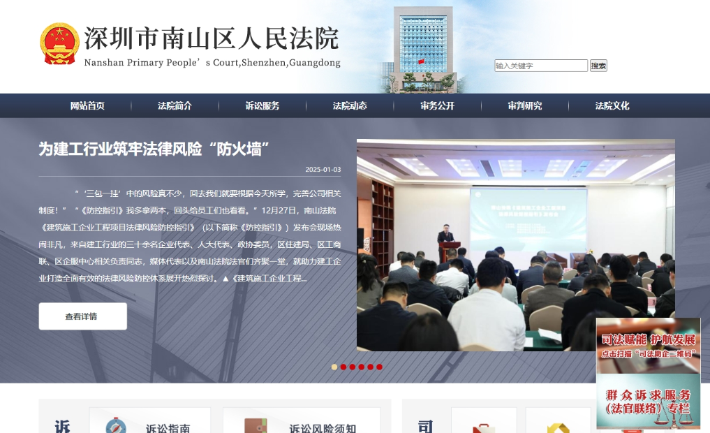 图为深圳市南山区人民法院官网。