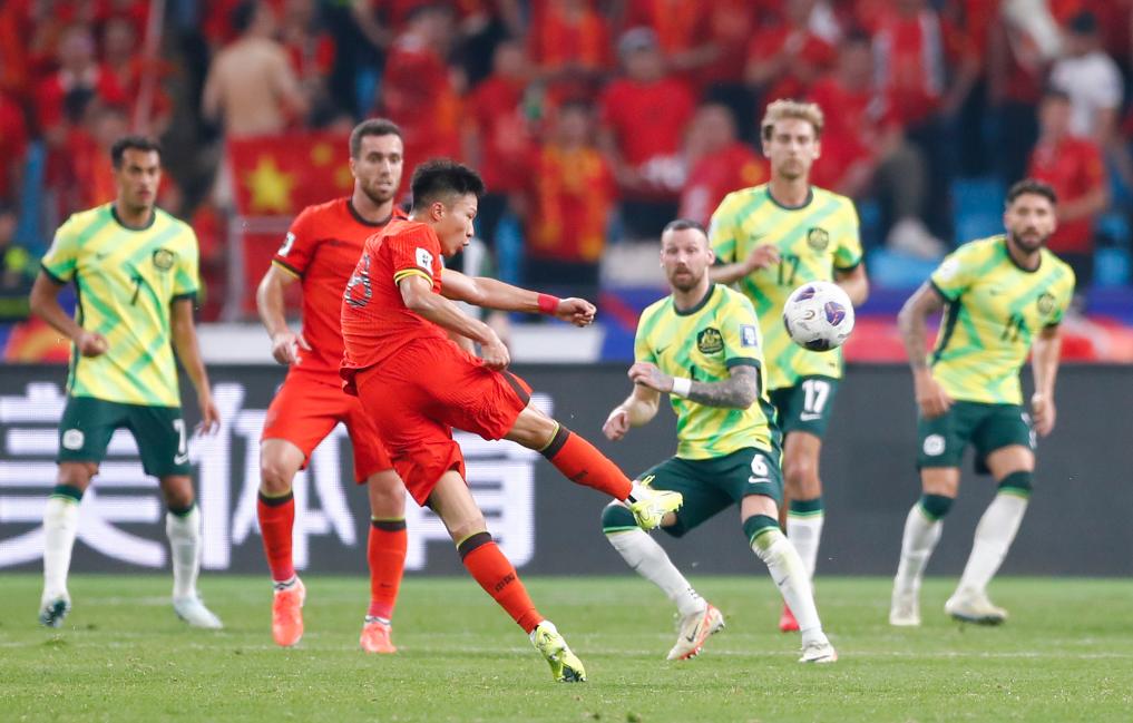 本场比赛,杭州奥体中心体育场涌入了超7万名球迷,不过现场巨大的声浪并没能给国足带来好运。第16分钟,澳大利亚队杰克逊·欧文得球后杀入禁区,黄政宇在防守时不慎滑倒,前者起脚兜射破门,中国队0:1落后。