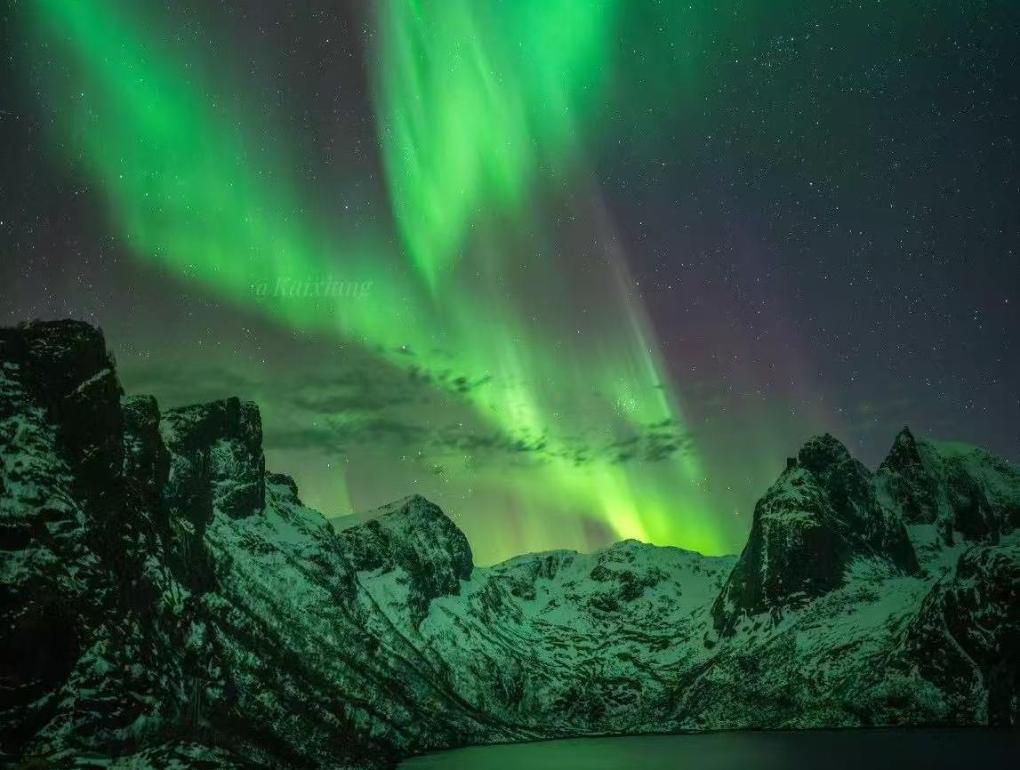 2025挪威罗弗敦滑雪登山赛后,王凯翔在当地拍摄的极光景象。