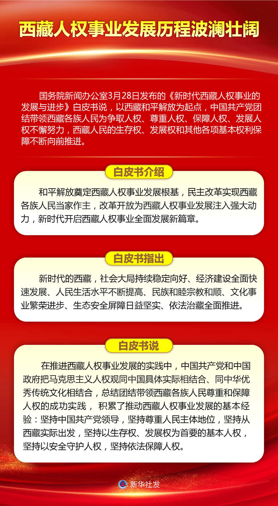 白皮书介绍,和平解放奠定西藏人权事业发展根基,民主改革实现西藏各族人民当家作主,改革开放为西藏人权事业发展注入强大动力,新时代开启西藏人权事业全面发展新篇章。