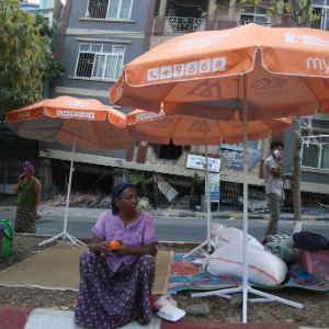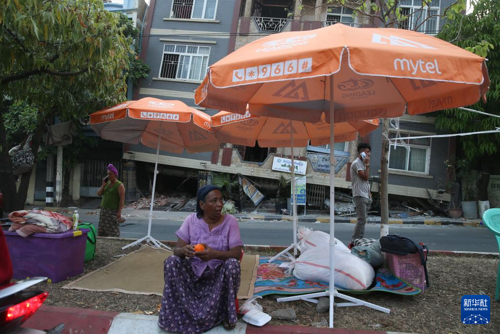 4月1日,在缅甸曼德勒,受灾民众在街头避难。新华社发(苗觉梭摄)