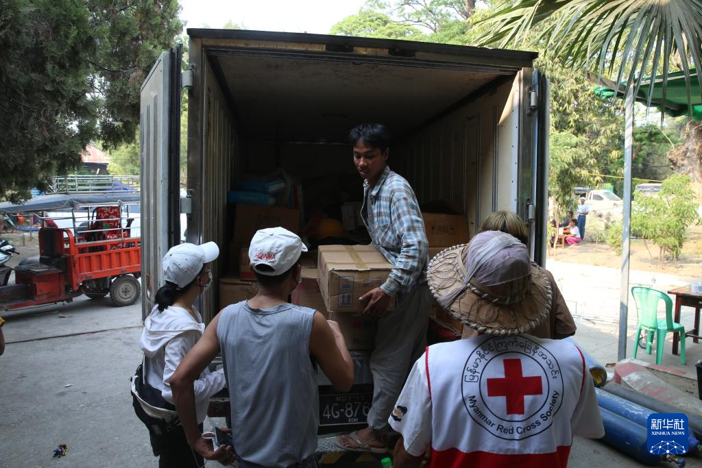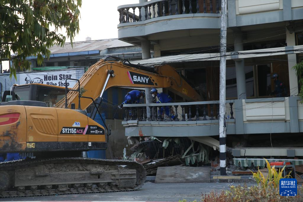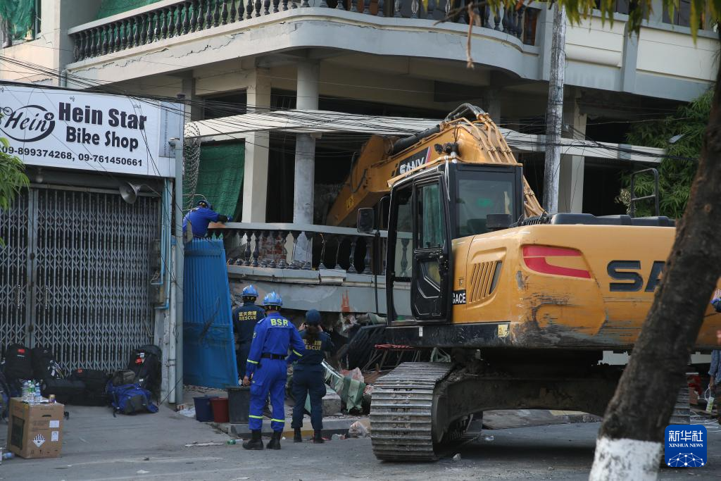 4月1日,在缅甸曼德勒,中国蓝天救援队开展救援。新华社发(苗觉梭摄)