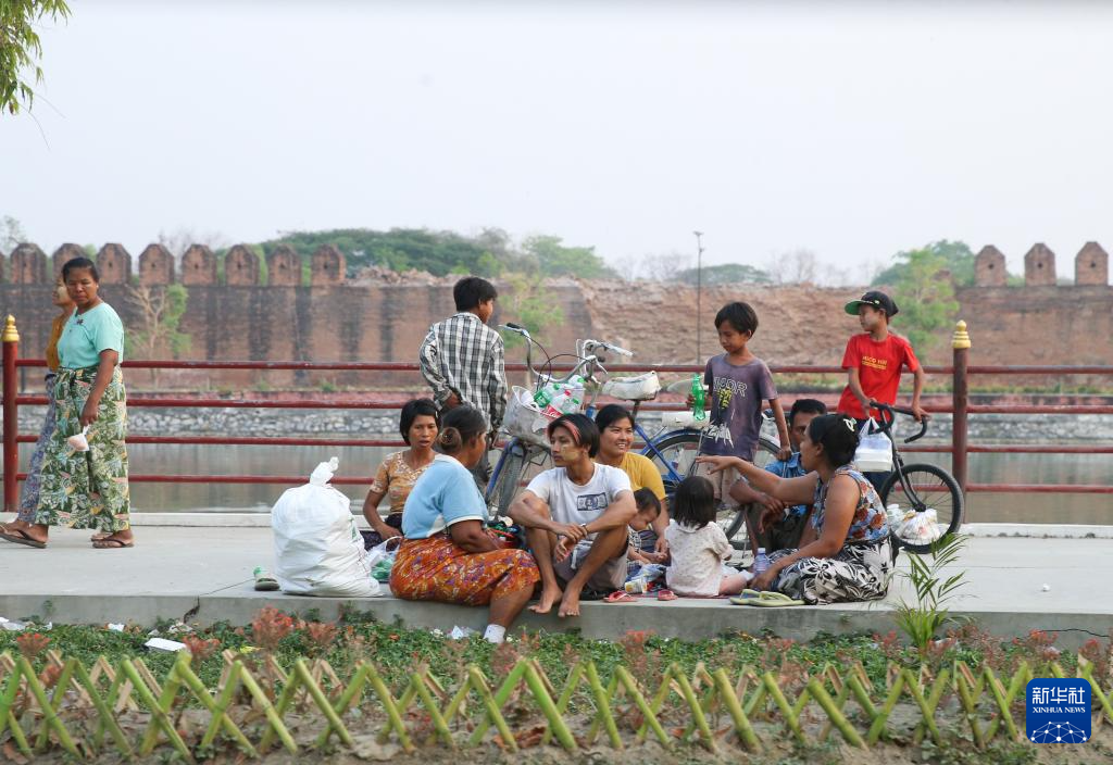 4月1日,在缅甸曼德勒,受灾民众在曼德勒皇宫附近避难。新华社发(苗觉梭摄)
