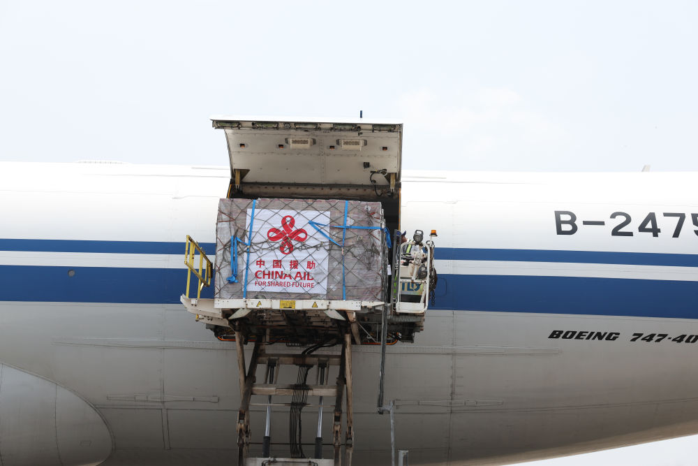 当地时间4月3日,中国政府向缅甸提供的第二批紧急人道主义地震救灾援助物资抵达缅甸仰光国际机场。新华社记者 贾浩成 摄