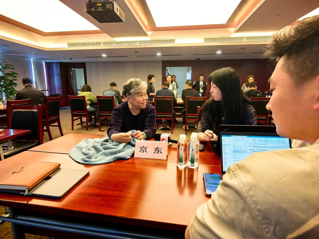 外贸企业排队与电商平台进行洽谈。新华社记者周蕊 摄