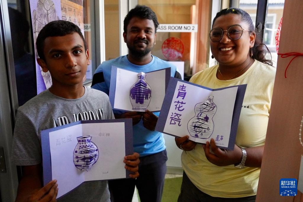 在学习制作青花瓷贺卡的课堂上,21岁的阿基拉·恰米卡拉一边描画青花瓷瓶身的弧线,一边将斯里兰卡大象与中国传统纹样填入其中,沿着画纸细细裁剪几道,便制成一张立体贺卡。“我很喜欢中国文化,我想在作品中将中国文化与斯里兰卡本土文化相融合。”他说。