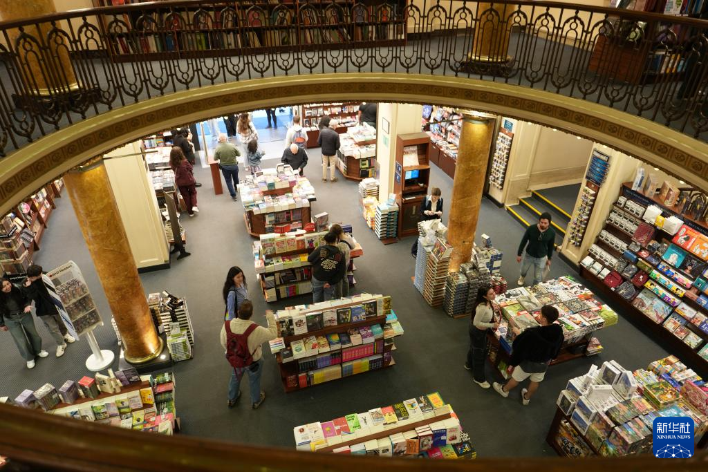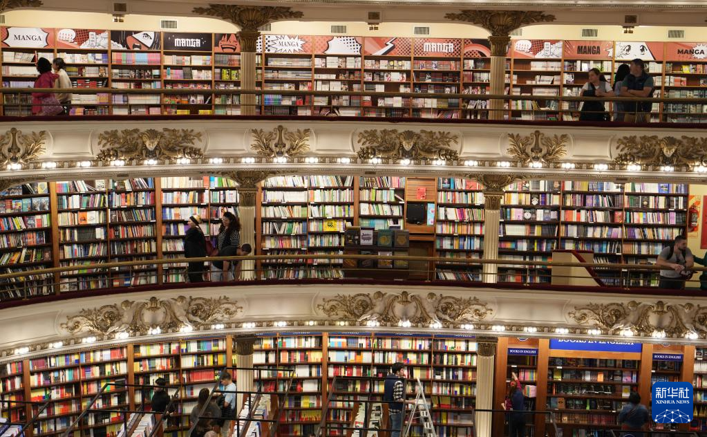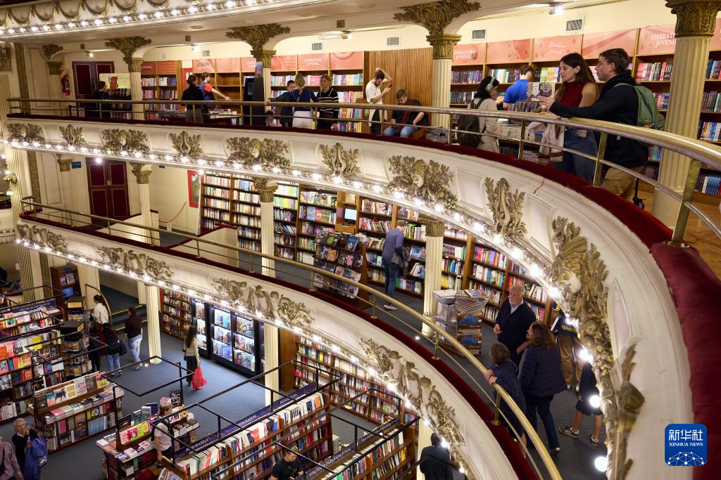 这是4月21日在阿根廷布宜诺斯艾利斯拍摄的雅典人书店内景。新华社记者 张铎 摄