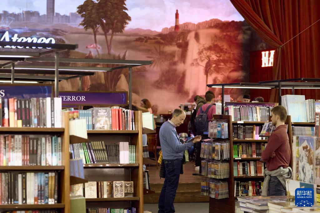 4月21日,读者在阿根廷布宜诺斯艾利斯的雅典人书店内挑选图书。新华社记者 张铎 摄