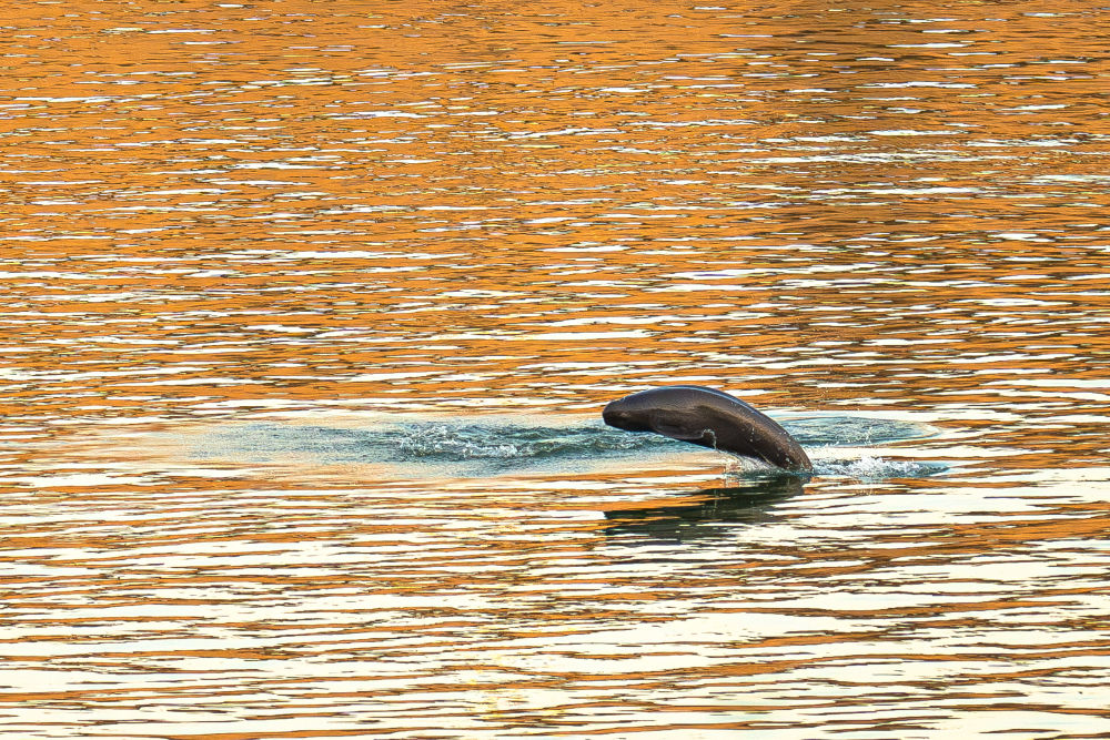 长江江豚在长江宜昌葛洲坝下游附近踏浪前行,与浪花共舞(2025年1月5日摄)。新华社记者 肖艺九 摄