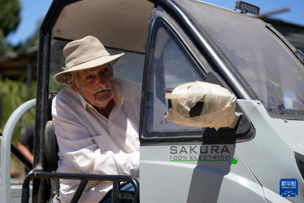这是何塞·穆希卡在乌拉圭蒙得维的亚一处农场驾驶电动汽车的资料照片(2月3日摄)。新华社发(尼古拉斯·塞拉亚摄)