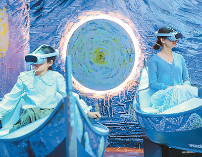 4月20日,游客在山东青岛世博园XR梵高数字艺术体验馆进行数字产品体验。张 鹰摄(人民视觉)