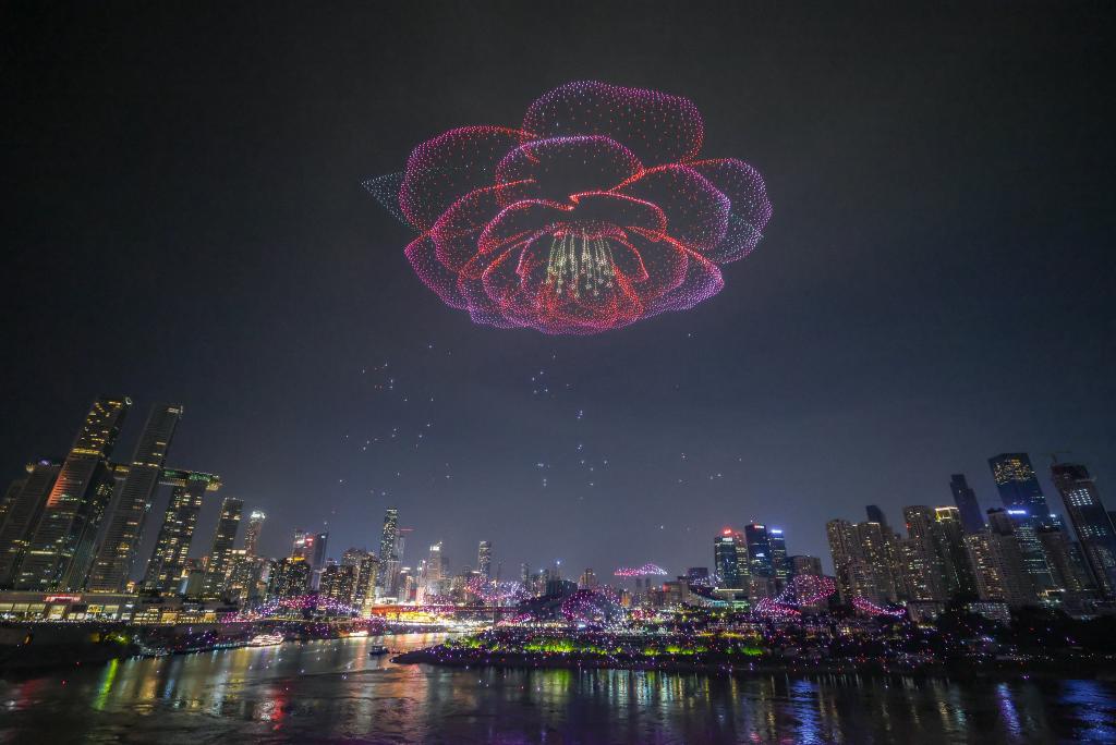 被无人机灯光秀点亮的城市夜空,成为展示大美重庆城市形象的多彩画布。