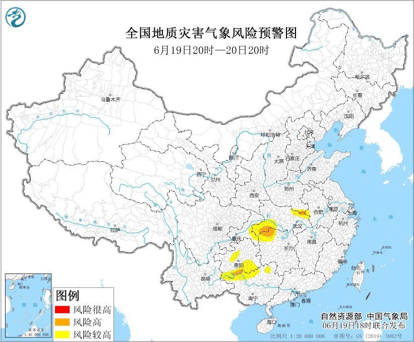 自然资源部与中国气象局同一时间联合发布地质灾害气象风险预警,预计19日20时至20日20时,安徽西部、河南南部、湖北东北部和西南部、湖南西北部、广西北部、重庆东部、贵州西部和南部、云南东部等地部分地区发生地质灾害的气象风险较高(黄色预警)。其中,安徽西部、河南南部、湖北东北部和西南部、湖南西北部、广西北部、贵州南部等地部分地区发生地质灾害的气象风险高(橙色预警),需做好地质灾害防御工作。