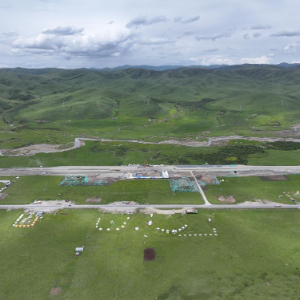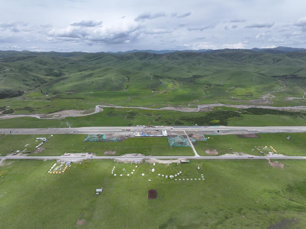 6月23日,无人机空中俯瞰新建西宁至成都铁路红原站。(成兰铁路有限责任公司供图)