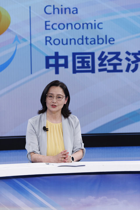 商务部外资司二级巡视员吉小枫在第十九期“中国经济圆桌会”大型全媒体访谈节目录制现场发言。新华社记者 金立旺 摄