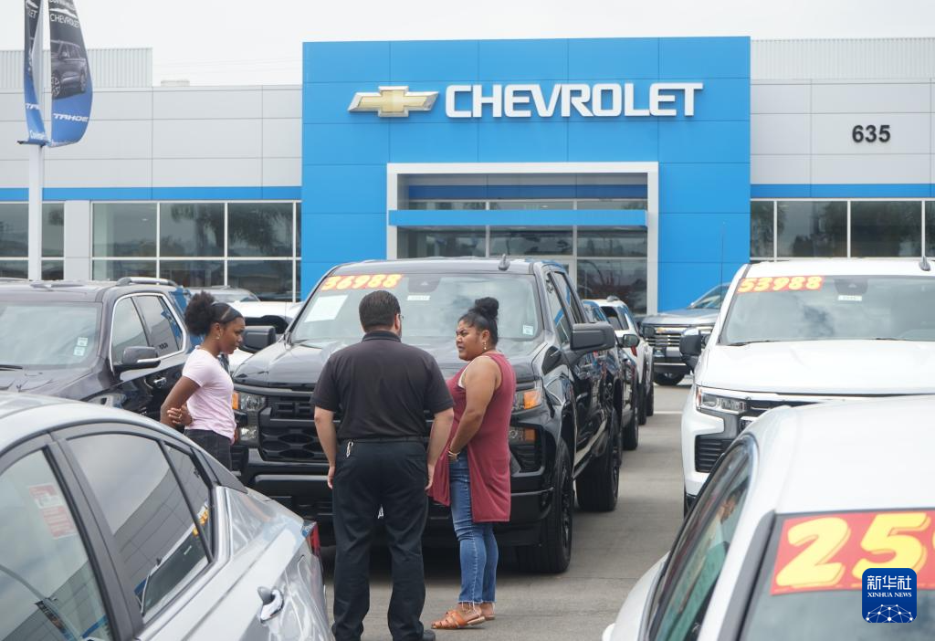 7月22日,在美国加利福尼亚州洛杉矶县科维纳市,顾客挑选美国通用汽车公司旗下品牌雪佛兰汽车。新华社发(曾慧摄)