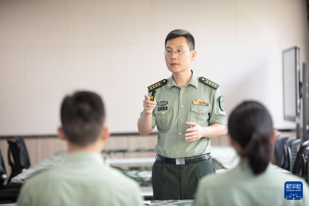 国防大学政治学院西安校区教授傅达林在教室为学员授课(7月24日摄)。新华社发(聂瑞明 摄)