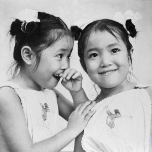1962年第六届全国摄影艺术展览上展出的作品《趣语》。新华社发(李文芳 摄)